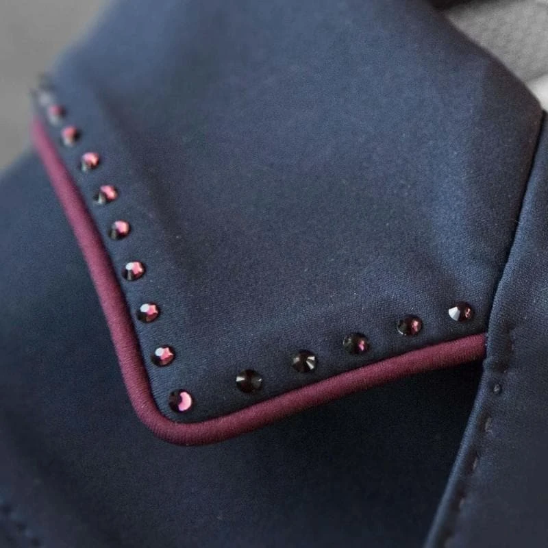 Possibly the most ‘oh my’ worthy jacket we have had, the Laury has incredible Burgundy (Amaranto) toned Swarovski studding the collar with feature piping also in Amaranto.