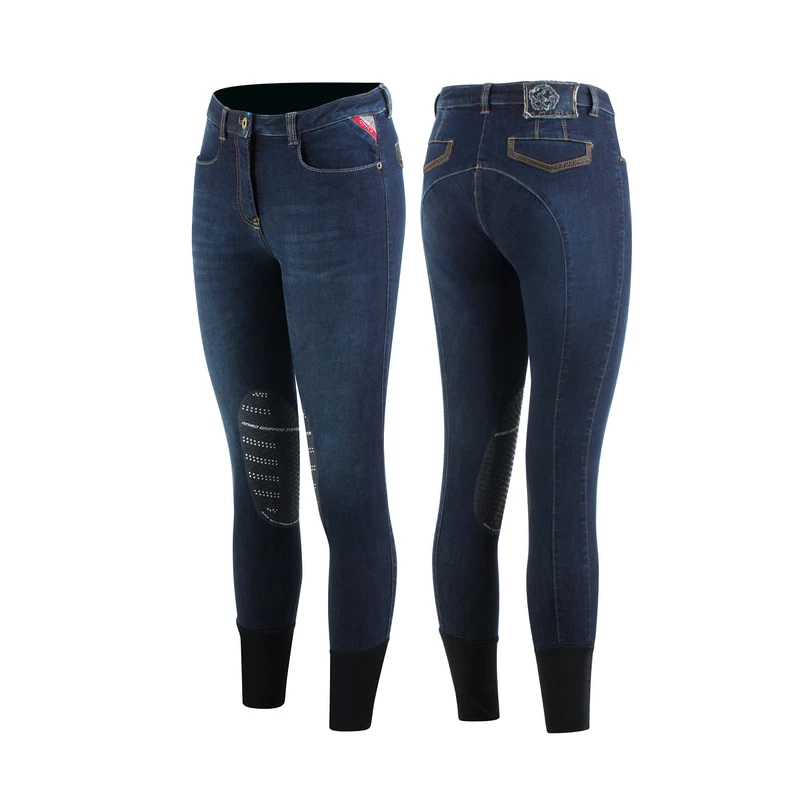 Are you looking for a denim breech with just something extra on them? These are it, the Animo NIRCAS Denim Jean Breeches have a leather trim around the back pockets.