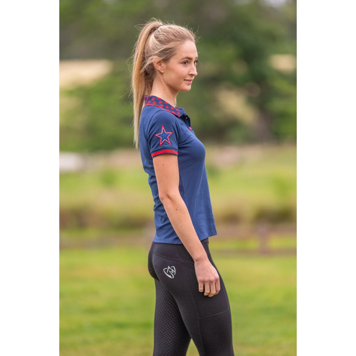 BARE Equestrian Star Polo is crafted from the highest quality sports performance fabric which is soft, breathable, light weight and four-way stretch. Featuring stars on the collar and a semi-relaxed fit this polo looks effortlessly smart with performance tights, or can be paired with jeans for the perfect casual look. Decorated with the BARE logo patch on the front and applique star on the sleeve.