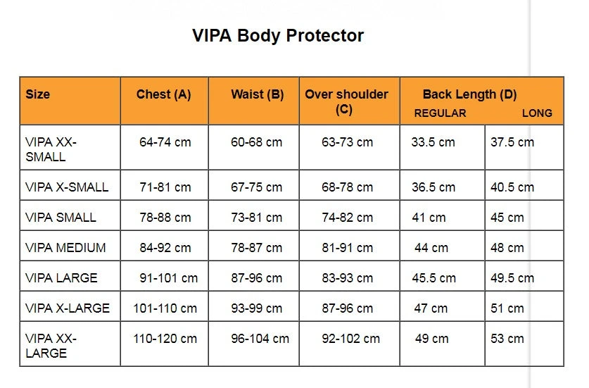 VIPA I Body Protector has been tested according to, and conforms with the EN13158: 2009 Standard Level 1