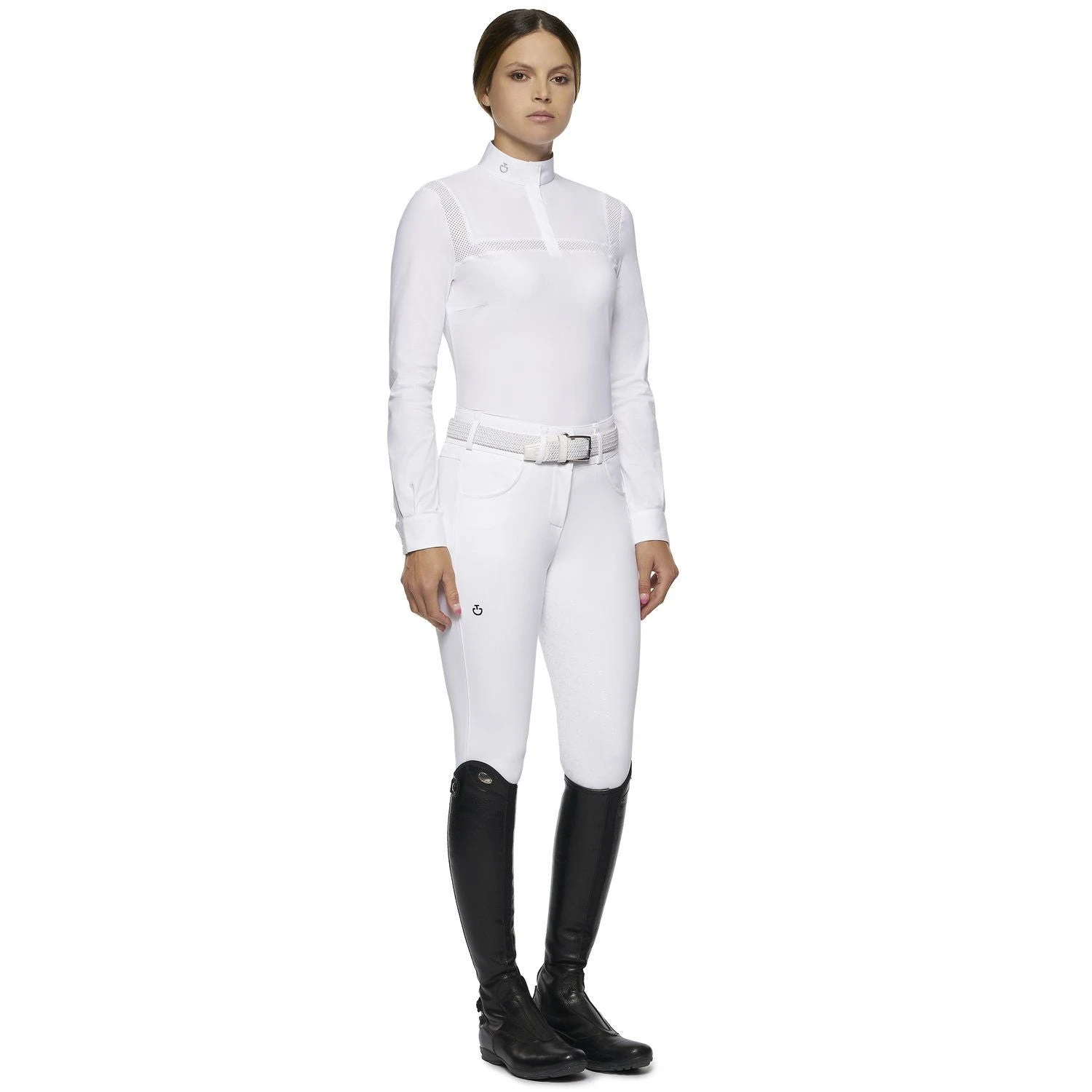 The Cavalleria Toscana women’s long-sleeved shirt with CT collar and perforated insert is made from breathable fabric and designed to perform comfortably in any arena.