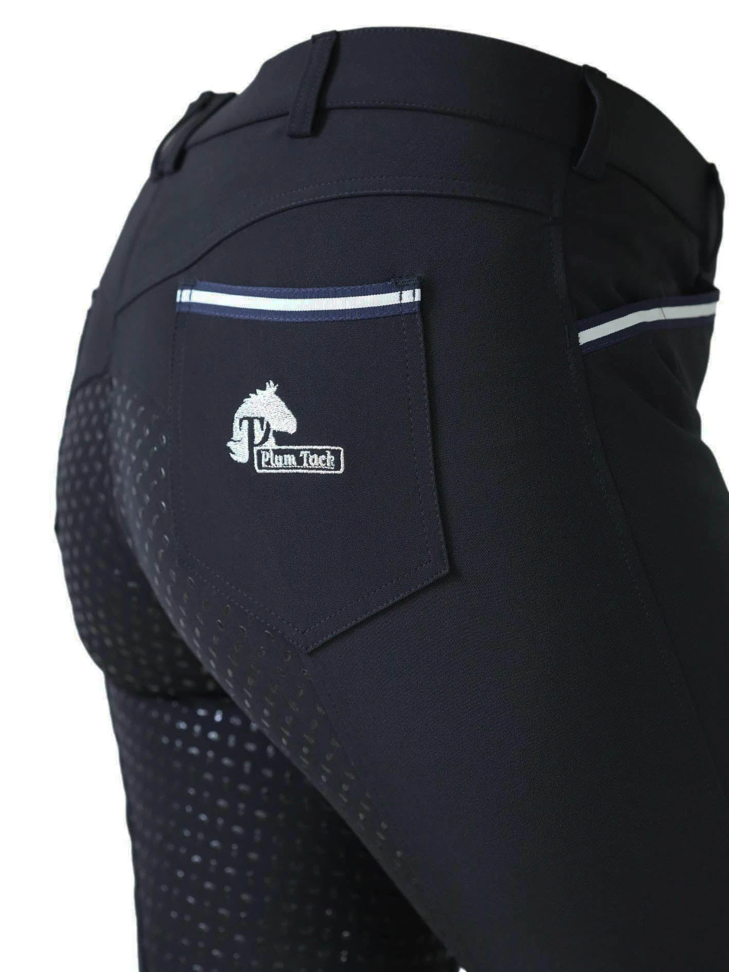 In classic black with contrasting highlights on the pockets these beautiful Breeches are perfect for warmer weather conditions. CoolMax fibres are breathable and moisture wicking keeping you cool, dry and comfortable, they work as hard as you do. The fabric is soft, light and durable. Four way stretch allows them move with you effortlessly. Silicone seat grip gives you extra security in the saddle, while still allowing you the movement you need. Sports comfort technology, in stylish and affordable breeches.Â