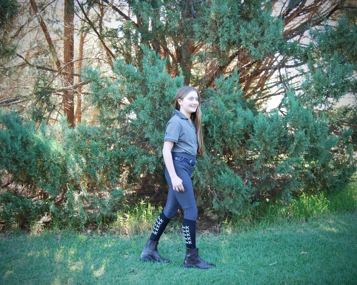 The carefully selected fabric allows for four-way stretch, is perfect for any weather, is flattering on all shapes and sizes, and is perfect for all equestrian disciplines.