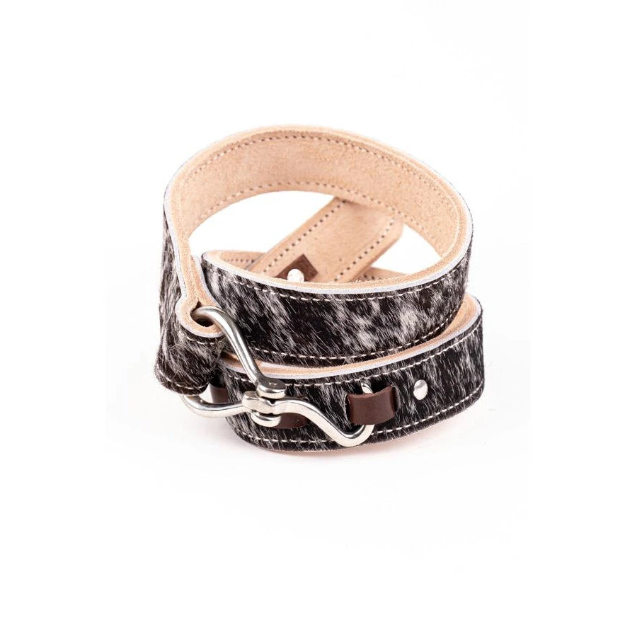 Handcrafted in Australia, our hide on Hoof Pick belts are hard wearing and well made. Each featuring a different hide design, no two belts are the same. Featuring a genuine hoof pick fixture, these belts will add a splash of equestrian inspiration to your style. 40mm width.