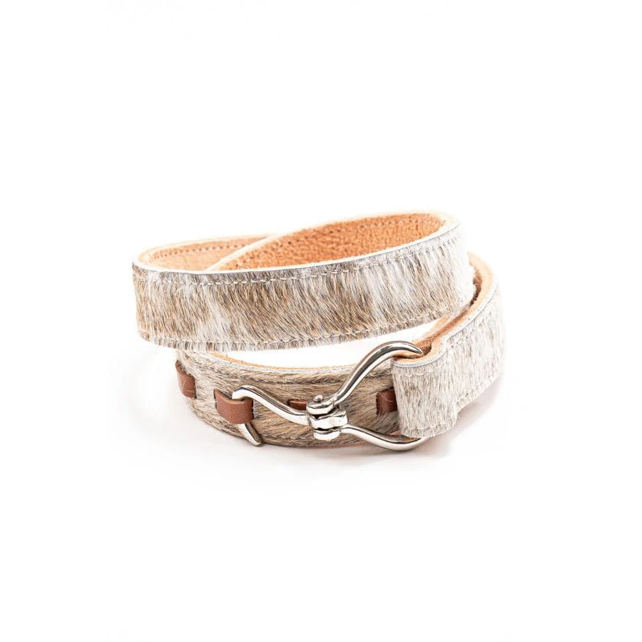 Handcrafted in Australia, our hide on Hoof Pick belts are hard wearing and well made. Each featuring a different hide design, no two belts are the same. Featuring a genuine hoof pick fixture, these belts will add a splash of equestrian inspiration to your  style. 40mm width.