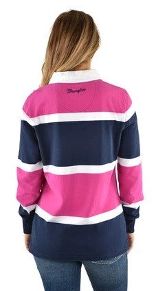 Wrangler Marika Stripe Long Sleeve Rugby Top Navy & Berry Ladies