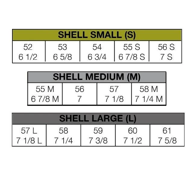 Three inner shell sizes are available Small (52cm-56cm), Medium (55cm-58cm) and Large (57cm – 61cm). Each shell can accommodate 5-6 inner foams of different sizes in order to obtain a perfect adjustment to the rider’s head.