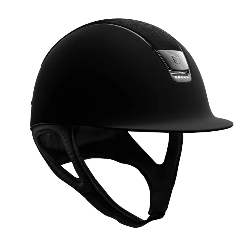Shadowmatt with embossed flower leather, black chrome trim and blazon with 5 Swarovski for that little bit of bling.