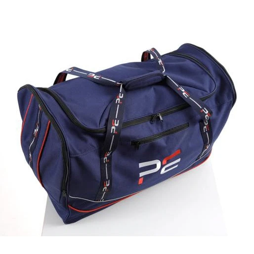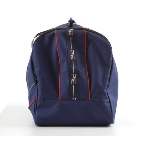 The reinforced bottom of this equipment bag makes it ideal for carrying a range of equestrian equipment. The sturdy carry straps with a Velcro wrap-around handle provide a comfortable and secure grip when carrying. The sporty style lines and signature PE branding add a touch of style to this practical bag.